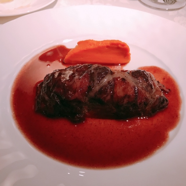 肉:国産牛テール煮込み 赤ワインソース ニンジンのピュレ
