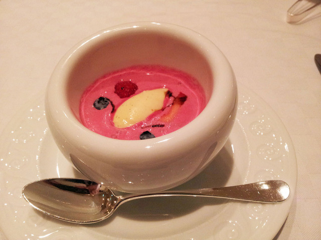 デザート前のお口直し ~ ビーツを使った料理(連れは熟成チーズ)