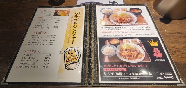 画像「店外メニュー(2025年10月)」に「一番人気」と記載があった「厚切り豚のしょうが焼き定食」に決めて店内に入ったので、肉は「大」としご飯は少な目でとお願いして「厚切り豚のしょうが焼き定食大(1,840円)」を注文しました。
