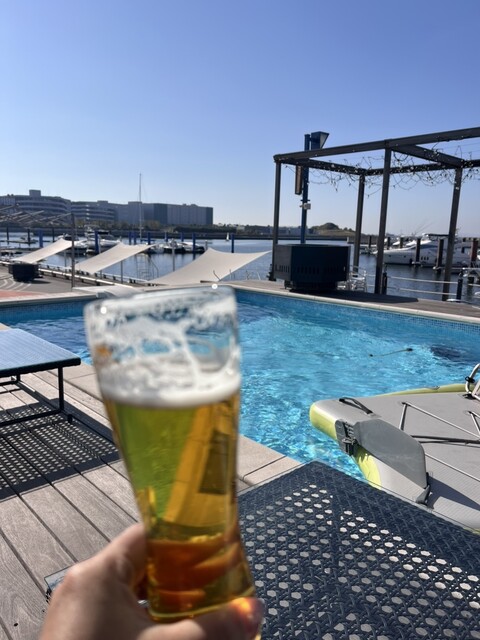 今日は空いていたのでテラス席でゆっくり座りました。ここで飲む。ビールは最高です。