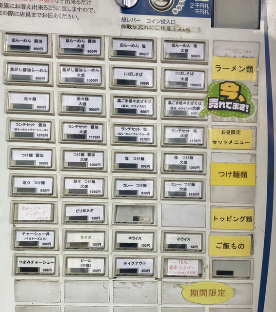 凪らーめん 券売機が登場