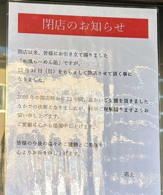 今年いっぱいで閉店する情報を得て