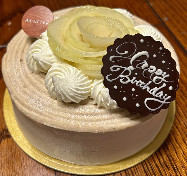 ル・ショートケーキ・エ・マロン 季節限定、洋梨と栗のショートケーキです。アーモンドを使ったしっとりふわふわのスポンジ生地と、栗を使った生クリームで、芳醇な香りの完熟洋梨をサンドしました。長野県や岩手県から届く芳醇な香りと旨味たっぷりの完熟洋梨に、栗とキャラメルのマリアージュが絶妙な、秋限定のショートケーキです。実はスタッフの中では『季節のショートケーキの中ではコレが一番のお気に入り』という人が多く、見た目は少々地味ながら、隠れた人気者なのです!ぜひ一度ご賞味を♬HPのホールケーキバージョン❣️