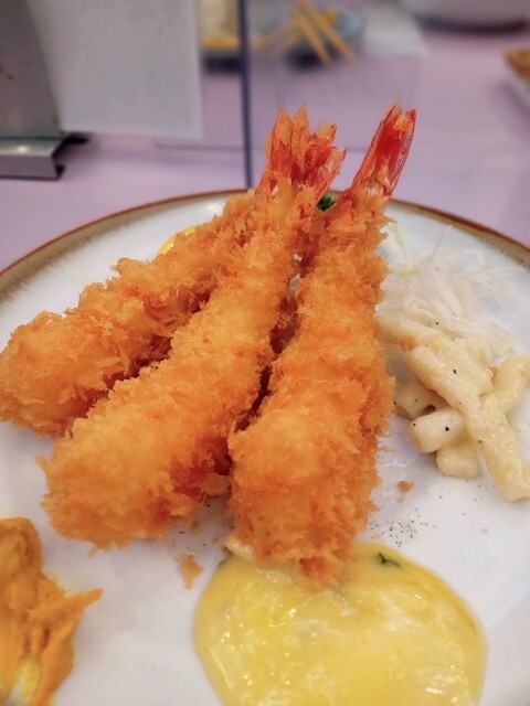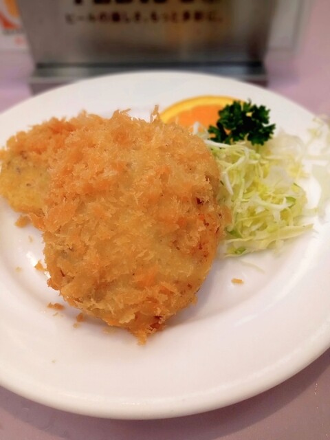 一人客用の大テーブルに座り、アサヒの大瓶とカニサラダ。