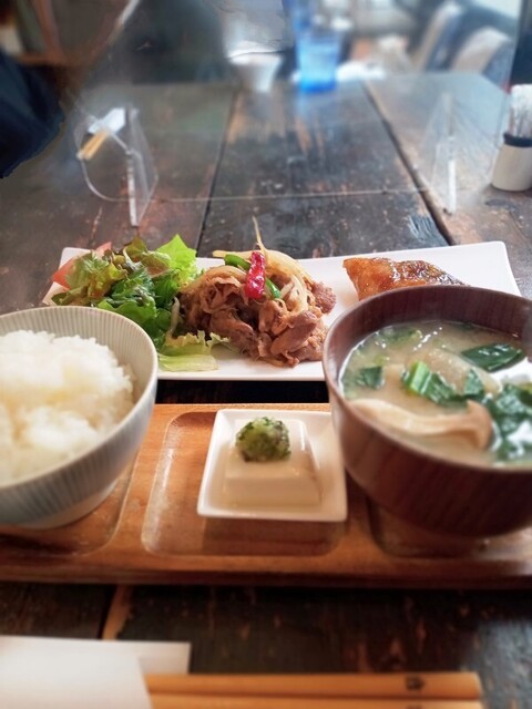 ご飯に小鉢、野菜たっぷりのお味噌汁は安定の美味しさ。