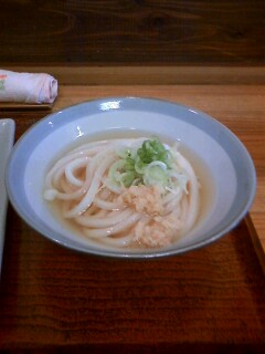 しばし待って供されたうどんにトッピングで生姜を少し。入れてから