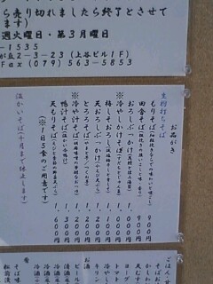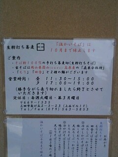 神戸電鉄横山駅近くにある蕎麦屋です。蒜山産の蕎麦を使い、