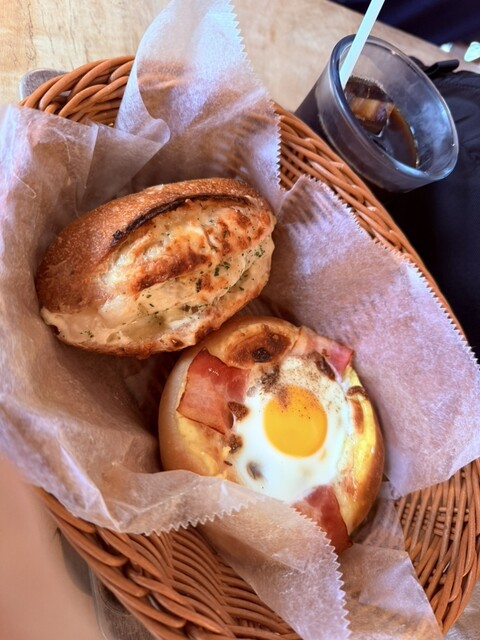 サウナの帰りに朝食をカフェで食べてます。