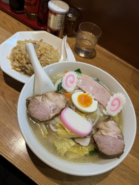 五目そば に 半チャーハンです。