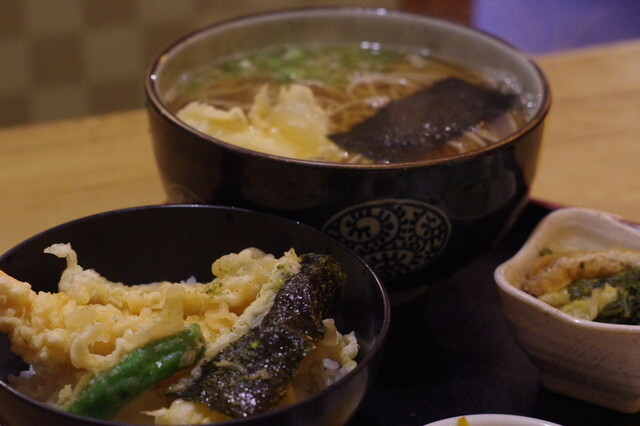 今日はきつねそばのあんかけ、たぬきそばを頂きました。
