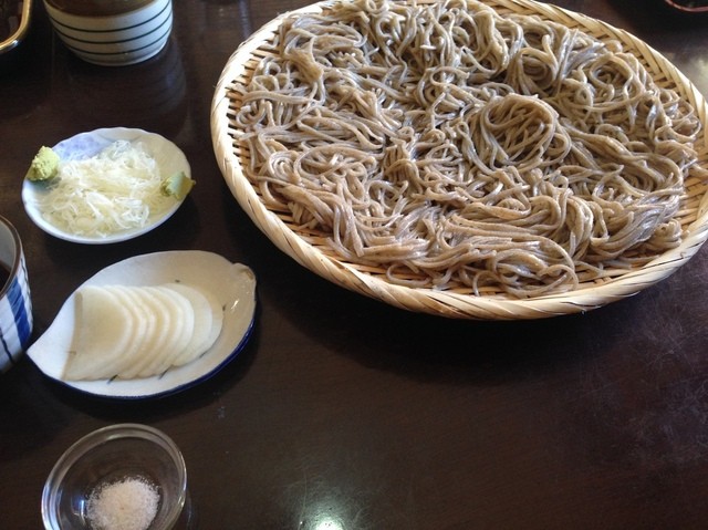 ふる里そば(5合)1800円。3〜4人前です。お新香もおいしい!