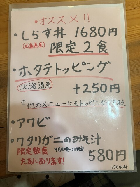 新作に「しらす丼」なるものが、あったけど今日は残念ながら在庫無し。
