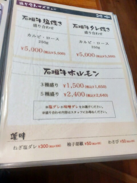 去年来てから、それぞれ100円、300円の値上がり。最上級の石垣牛だから仕方ないとはいえ、あまり割安感はなくなりましたねえ。