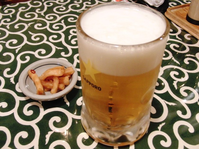 続いて「焼餃子」。皮がこんがりキツネ色で、パリッとしてるのに、食べるとモチっと美味い。中の餡は肉肉しい感じで好きなタイプです。これもいけますねー。 あー、もうビールがなくなる。