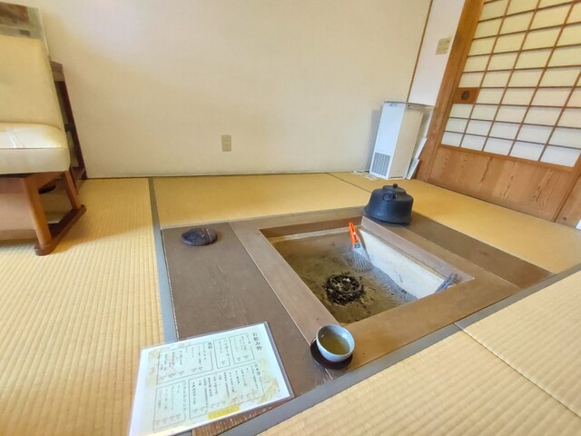 メーター1200円ほどで、川沿いの街並みにある「飴源」に到着しました。創業天保9年(1838年)という老舗の川魚のお店は、立派な二階建ての日本家屋が素晴らしい。広い玄関でお出迎えを受けて、まだ予約の12時まで少し時間があるので、まずは小さな待合に通されました。囲炉裏のある書斎のような部屋は、窓から川が少し見え、過去訪れた著名人の写真が飾られた殺風景な個室です。温かいお茶が出され、しばしひとりきりで待たされます。6~7分待ったかな、いよいよ2階の個室に案内されました。