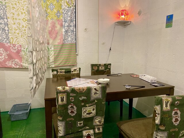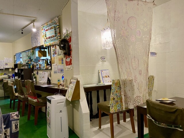 こじんまりとした店内は、布を使って工夫した内装で素敵な雰囲気を醸し出しています。