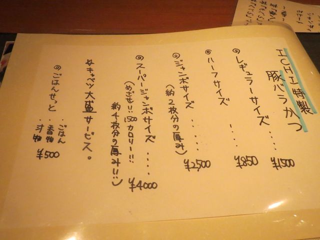 とんかつメニューは、ロースもヒレもなくバラカツのみです!