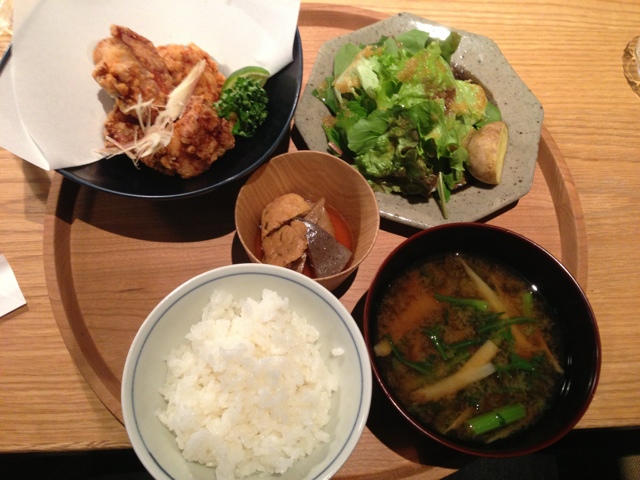 私たちが頼んだのは、「静岡・ふじのくにいきいきどりの唐揚げ定食」(1,470円)と「大阪・旬野菜のだし煮込み定食」(1,500円)。