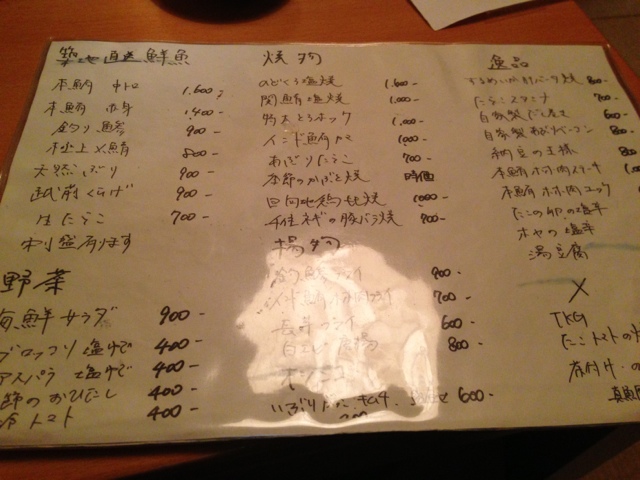 ですので、刺身を中心に焼き物など、築地直送の鮮魚が出てくる感じです。
