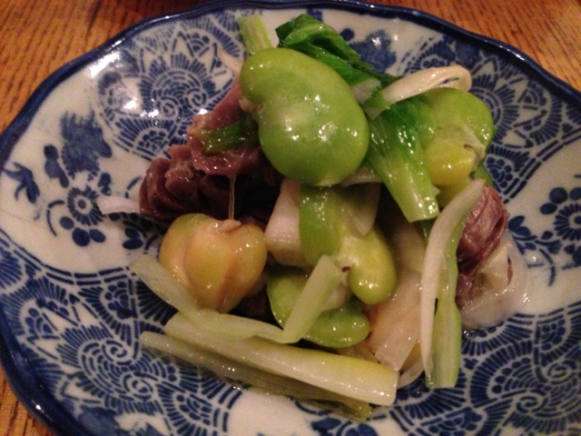 私たちはそれほどお腹が空いていなかったこともあり、のどぐろ塩焼、千住ネギの豚バラ焼きと海鮮サラダを注文。