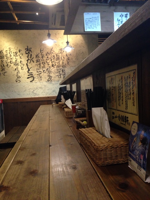 カウンターだけの店内ですが、席数はけっこうありますね。通路も広く、ゆったりとした空間です。