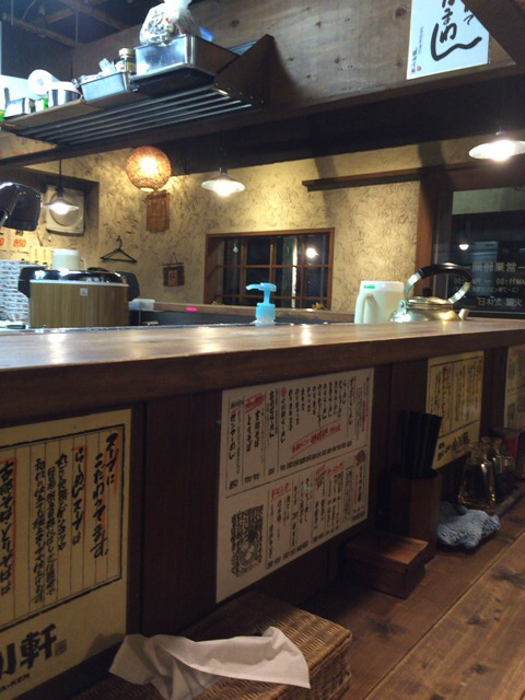 店舗内は、カタカナのコの字型のカウンターになっており、中央に厨房があります。