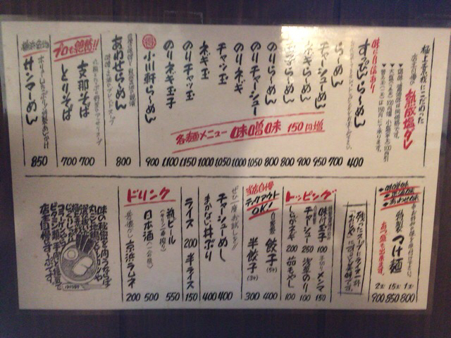 メニューを見てると、このお店は基本「塩」推しのようですが、醤油も味噌もできるようで幅広い品ぞろえです。