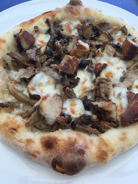 生地がモッチモチでとてもおいしく、またキノコがたっぷり載っています。