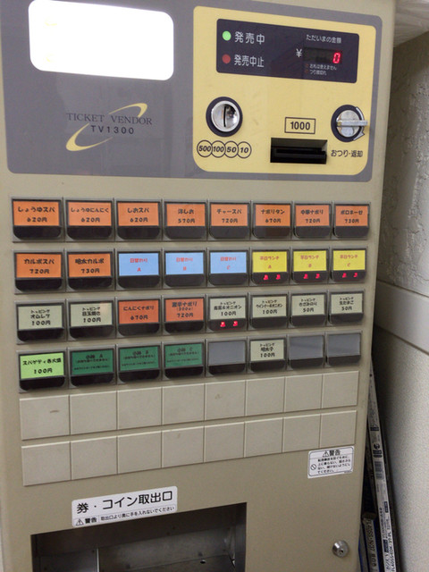 券売機前にある、おかわり自由のスープをもらって席に着きます。