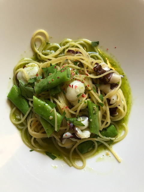 ・美瑛産ササギ豆と噴火湾産水ダコのスパゲッティーニ サルサジェノベーゼ