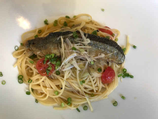 同行者が頼んだ他のパスタも食べましたが、その中でも「釧路産サンマと焼きナスのアンチョビ風味のスパゲッティー二」が非常に美味でした。