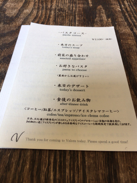 というわけで、私たちは「パスタコース」(2,100円)をお願いしてありました。