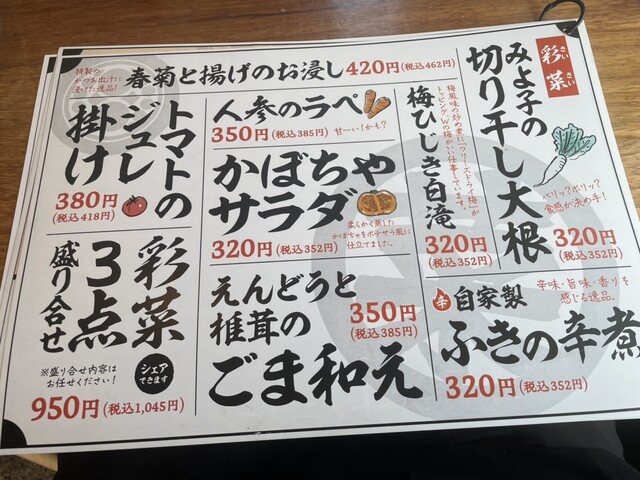 彩菜3点盛りからスタートして、肉汁たっぷりのシュウマイ、カレーピザ。メニュー見るのも楽しいです。