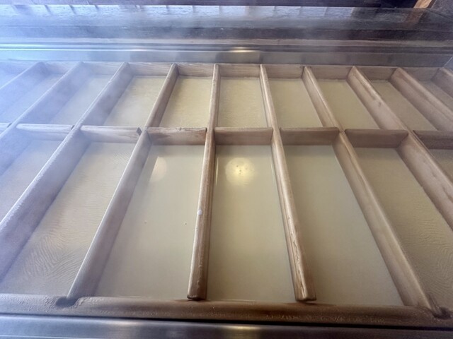 縁っこのあまり狙われないところは湯葉が厚くなっていて、とても美味しく、反対に出来たては薄く柔らかくてどちらも楽しめます。