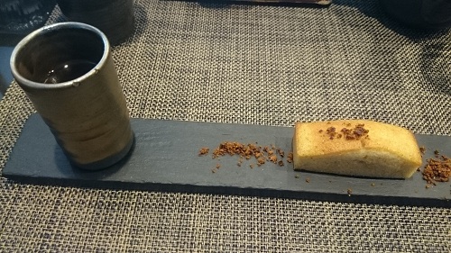 そして、温かなフィナンシェとほうじ茶が運ばれてきます。