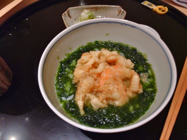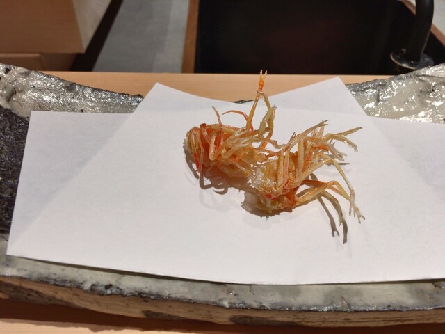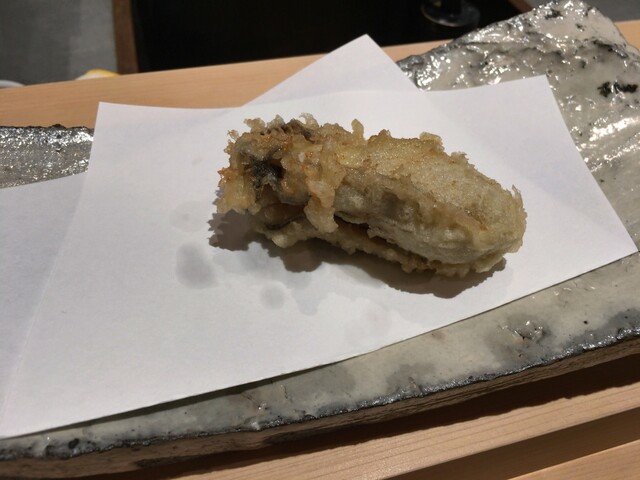 一通り頂いてみての新留さんの天ぷらの感想はまず人生初と思えるもののオンパレードだったこと、おなじみのネタが最高に美味しかったというのはもちろんですが香箱とか雲丹オンザ海苔天ぷらとか食べ方が初めてのものが特に嬉しかったです。