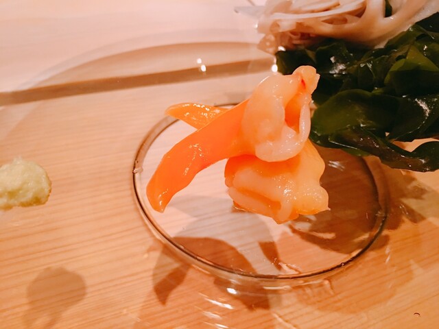 Sugaharaのプレートには肉厚な若芽とシャキシャキな蓮根が置かれます。