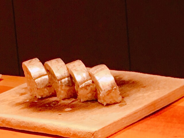 炙りたて太刀魚が香ばしいのは言うまでもないですが、ここで初めてたかおかさんのシャリとご対面、やや硬めの仕上がりなのにさりげなく密着した感じは好み、これは巻いてあるので握りとはまた違うと思います。