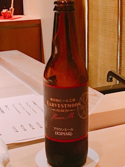 さて、Mさまにおススメ頂いた舞浜の地ビール、ハーヴェストムーンで乾杯、あとは親方の手元をじっと見つめる3人。