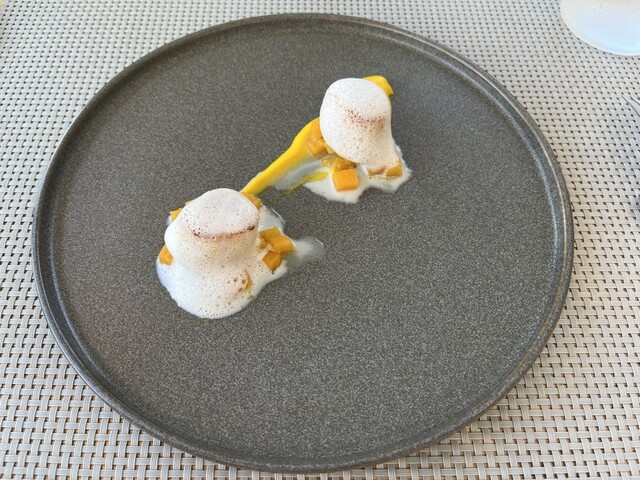 バニラの泡はアサリのお出汁で帆立を引きたてます。