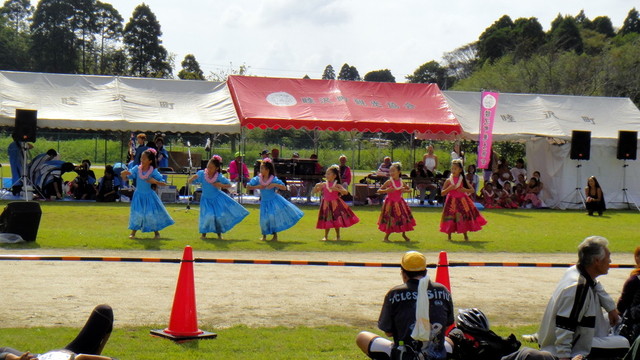睦沢町立睦沢中学校で地元小学生の歓迎フラダンス