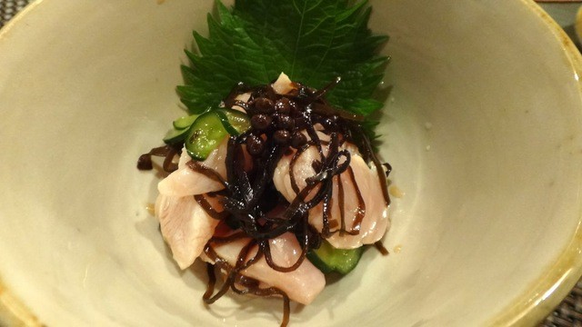 ささ身の塩昆布和え。