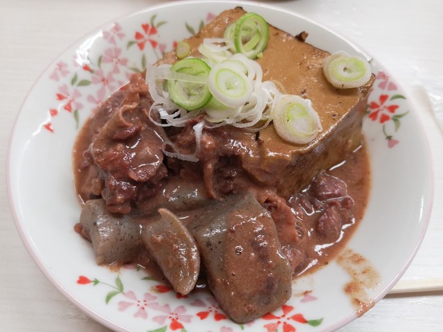 つまみは名物の牛煮込み豆腐。