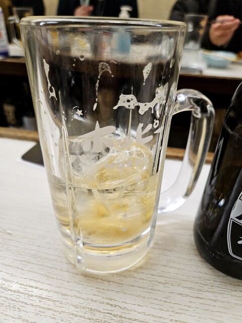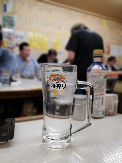 アルコールはこの店の私のルーティン、「レモン抜きのダブル」。スライスレモンを入れない酎ハイダブルのことです。