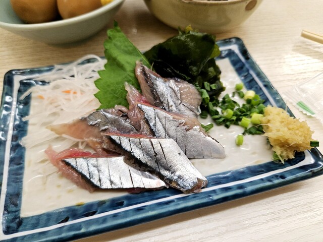 イワシ刺しとほうれん草のゴマ和えを頼みます。