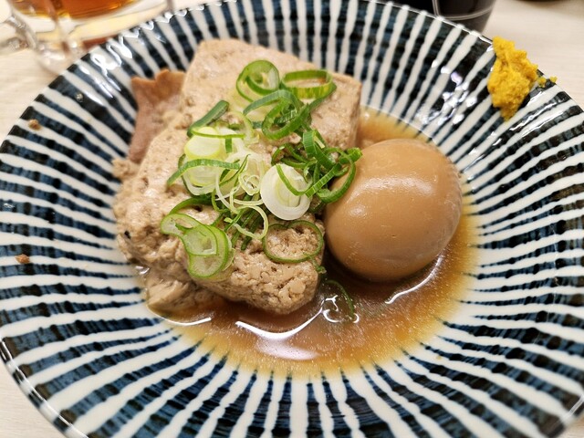 そして、煮込み。先ほども寅屋でナンチャーと煮込みを食べましたが、ここでも煮込みと煮玉子という煮込み尽くし。更に、時間のかかるはんぺん煮も頼んでおきます。
