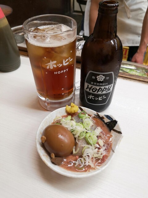 まずは黒ホッピーを頼んで人心地。