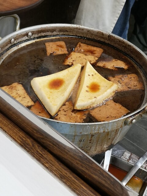 オーダーを受けてから煮込みの汁に入れるはんぺん煮。