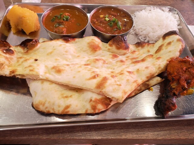 妻が頼んだのは「2020セット」。カレー二種類にナン、タンドリーチキンがついて、1,250円。