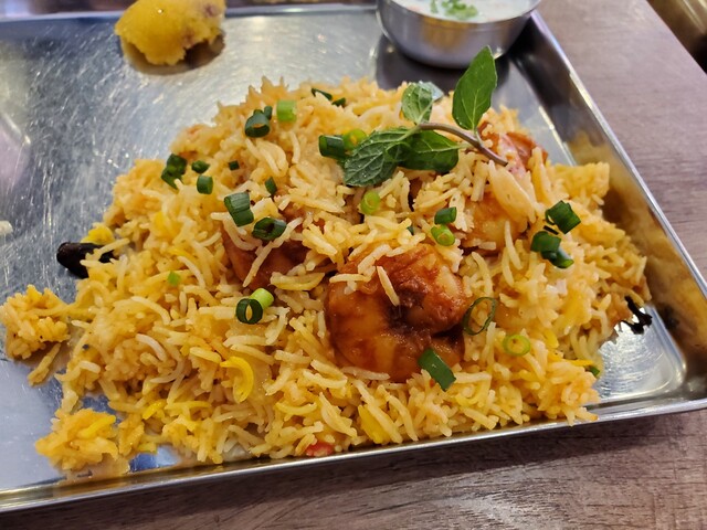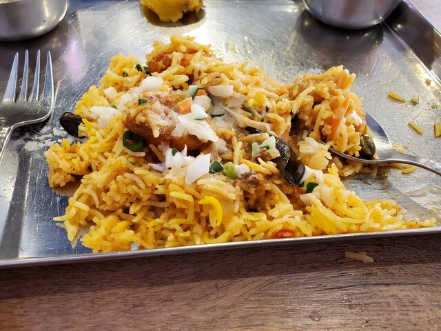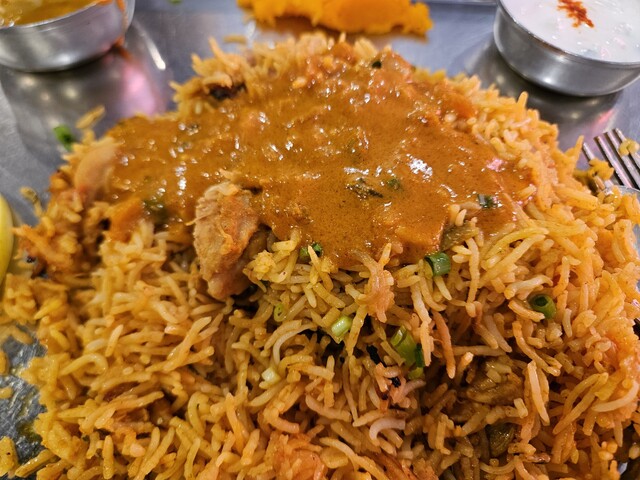 大好物のビリヤニは、今日はマラバール・チキン・ビリヤニ。